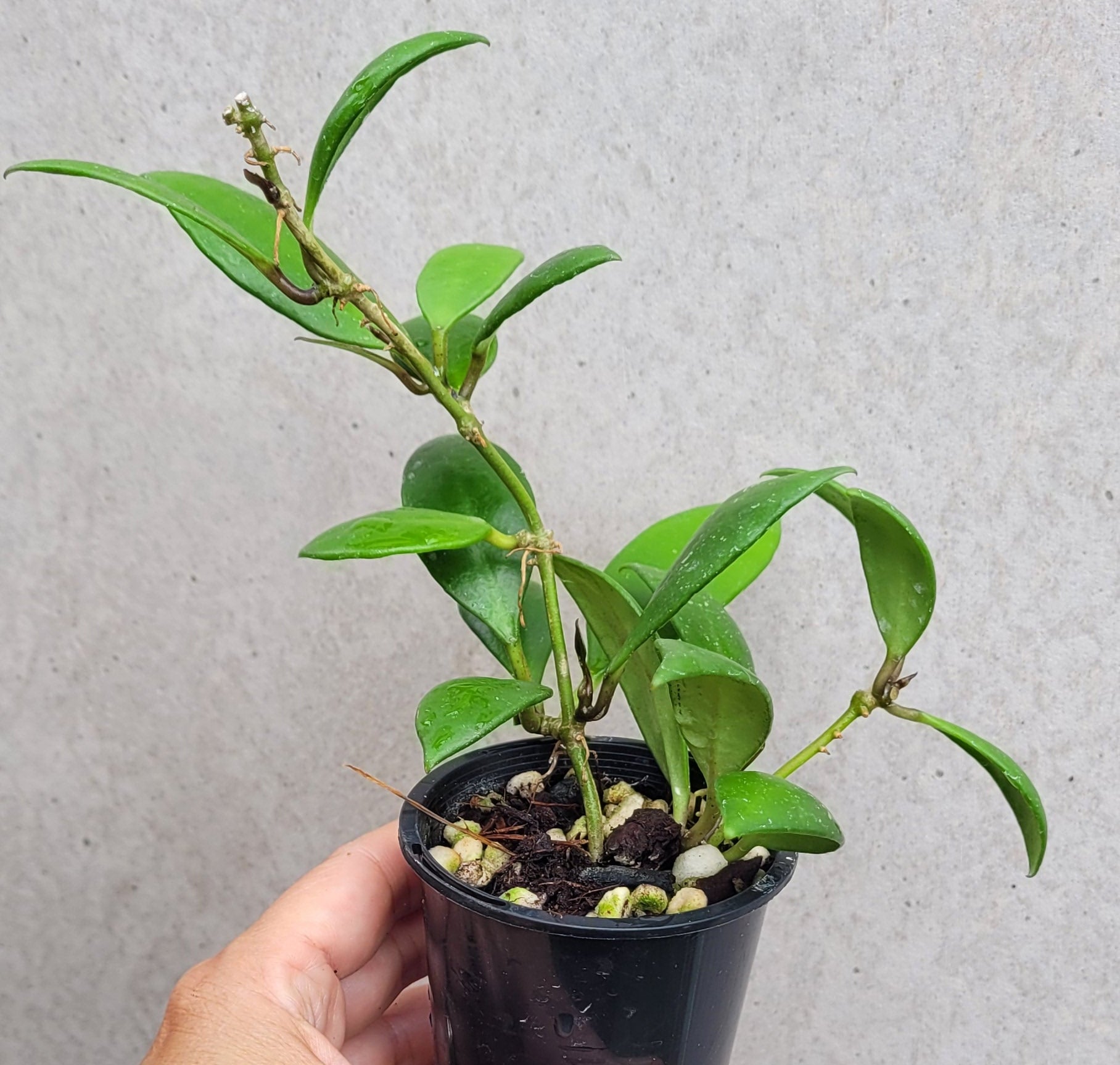 Hoya revoluta is known for its hard, leathery foliage and clusters of tiny, pink, star-shaped flowers.