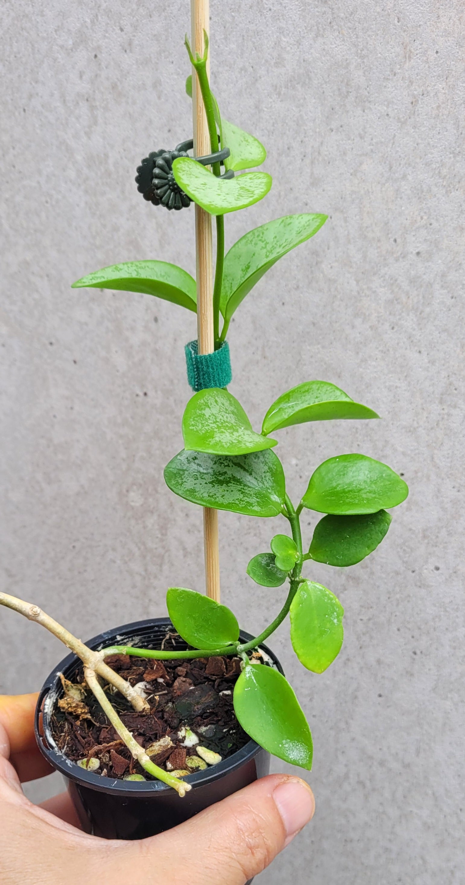 Hoya collina Biak Irian Jaya IML1187 ( or hoya sp. Biakensis) is a beautiful round leaf splashy hoya. It is a tropical epiphytic vine native to Biak Island Papua Indonesia. Highly prized by collectors for its thick, succulent foliage and distinctive butterscotch-scented flowers