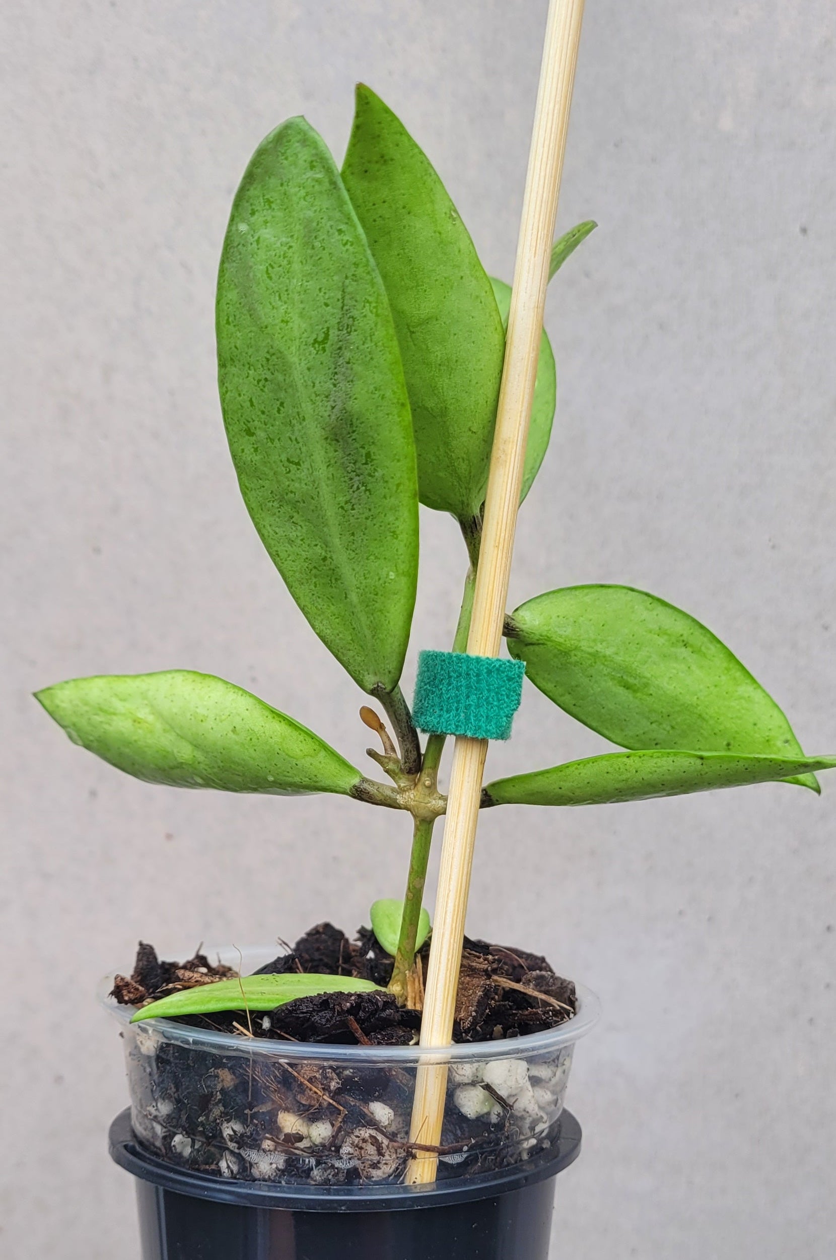 Hoya sp 'Silver Lady Dy' (XiaoJie003) is an easy care vining plant. It has striking semi succulent leaves with a shimmering metallic silver hue. It is a hybrid cultivar native to Southeast Asia and is a prized choice among plant collectors for its unique foliage and fragrant flowers.