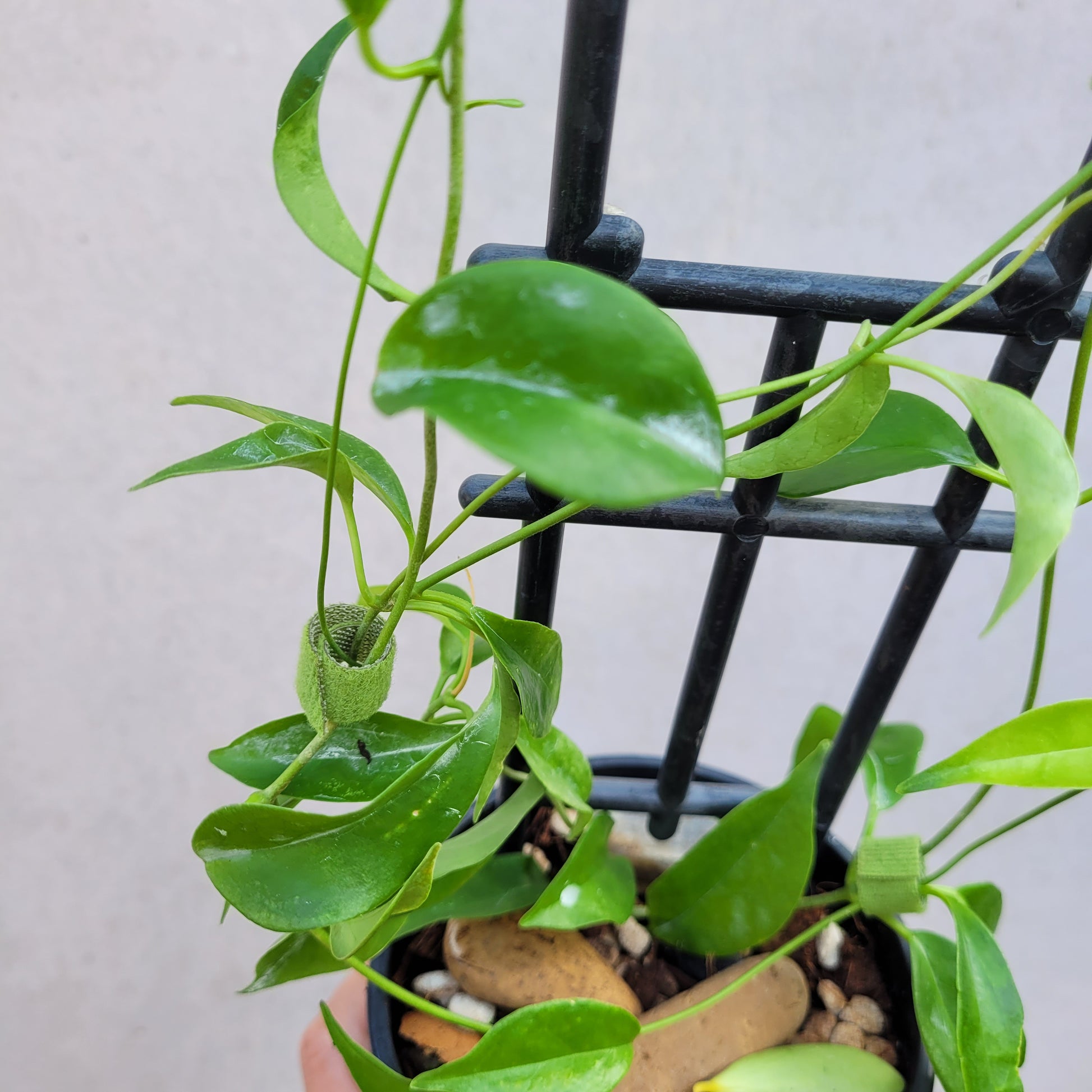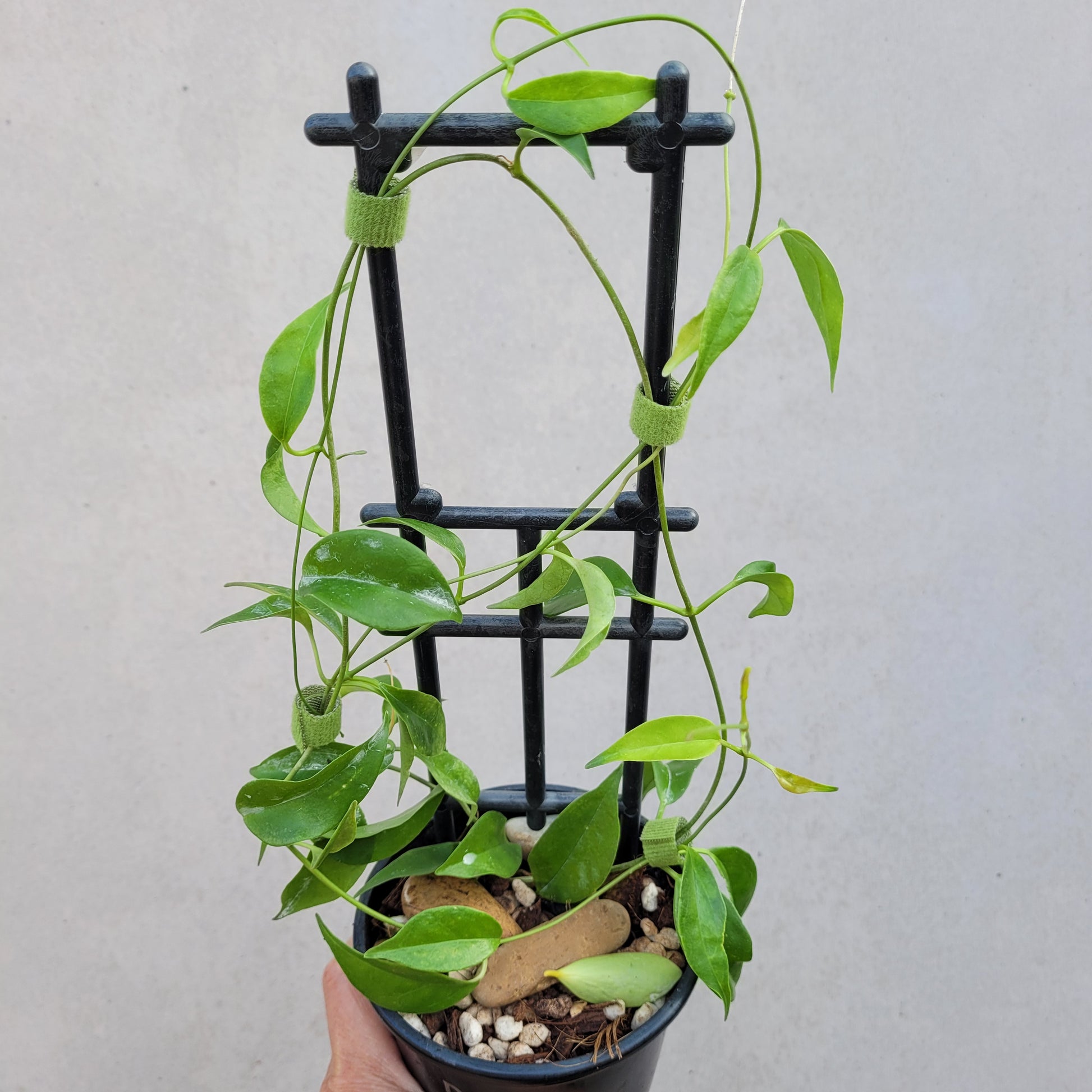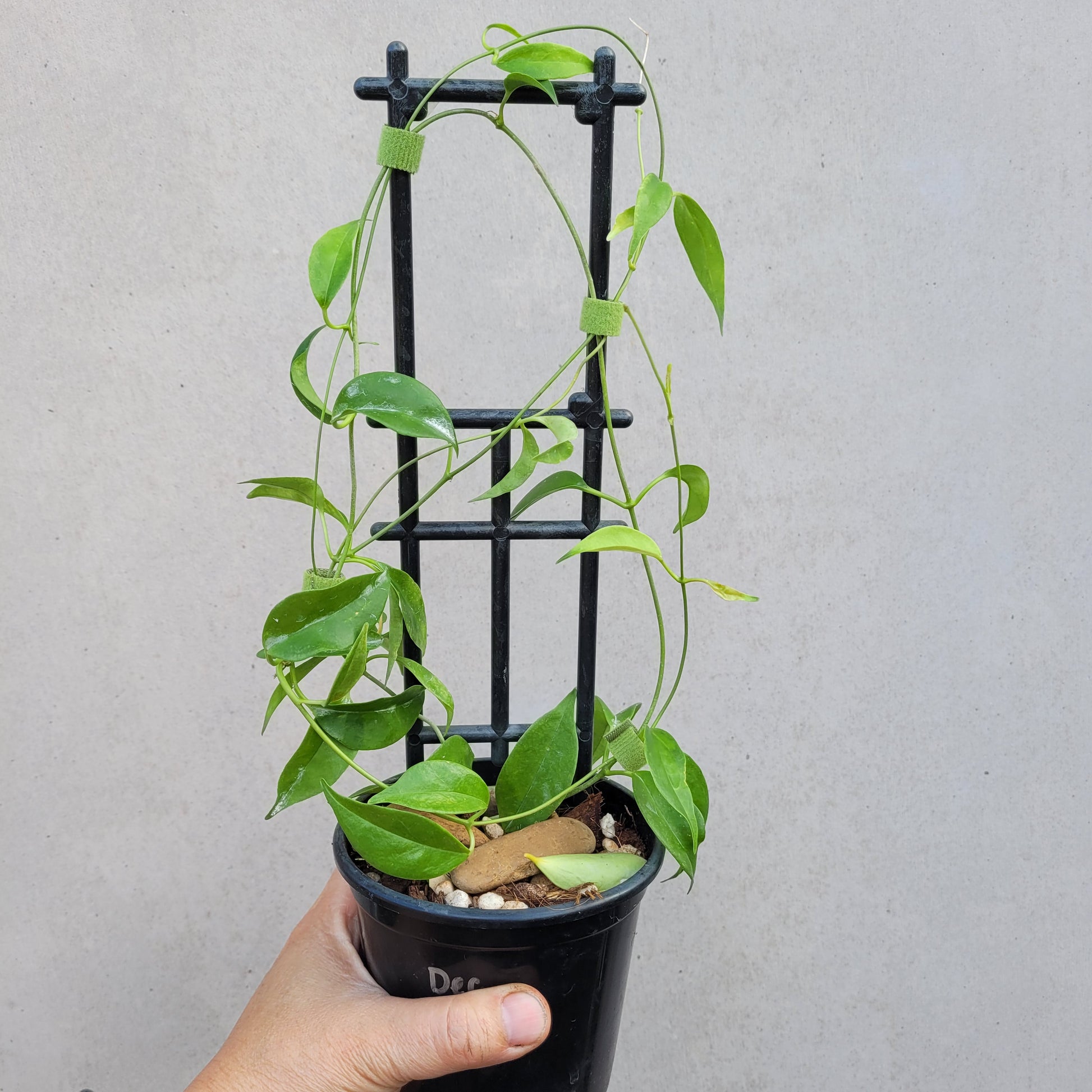 This hoya species produces thin shiny green leaves that like to twine and climb. A very fast climbing hoya best grown on trellis to allow more vining. Plant for sale is a large plant approximately 2 years old.